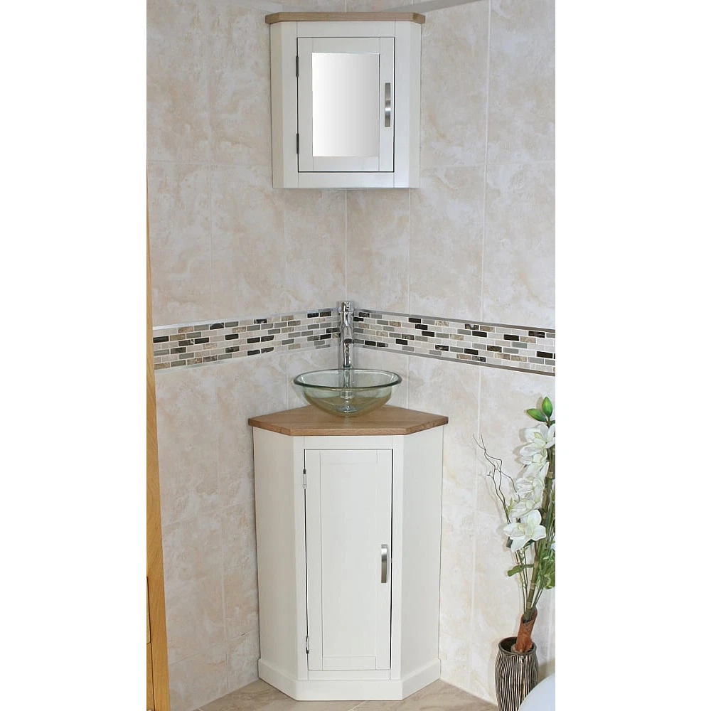 - Matching solid oak mirrored reversible door top cabinet.