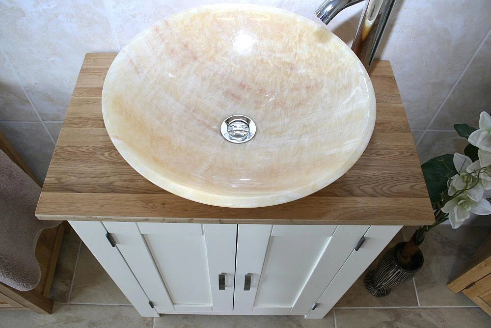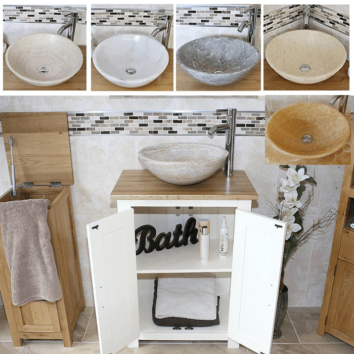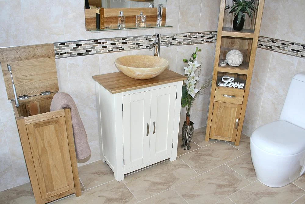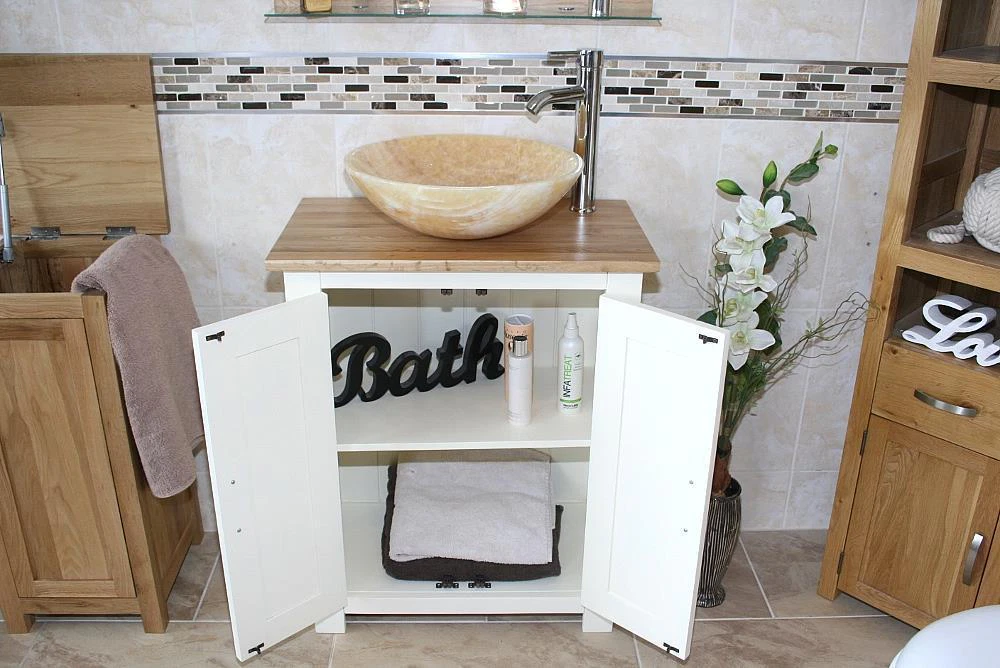 Oak Topped Vanity with White Painted Base Unit & a Choice of Stone Basins to Complete the Perfect Set.