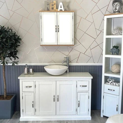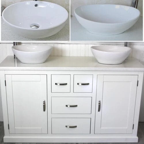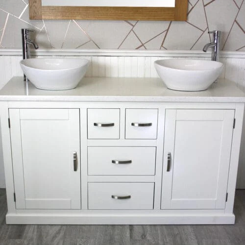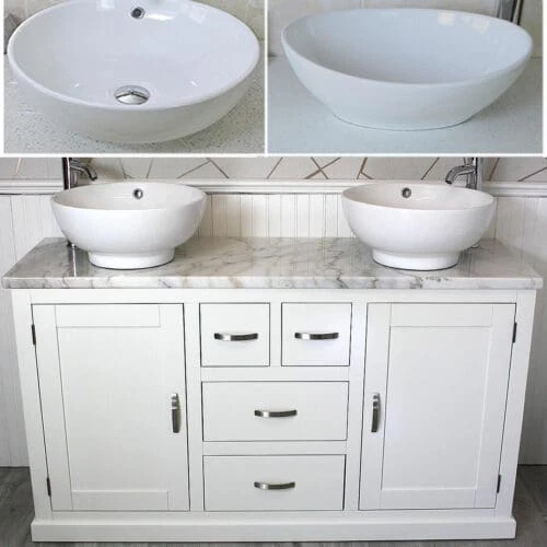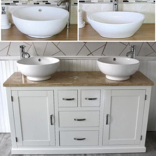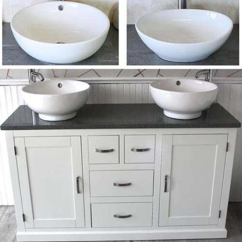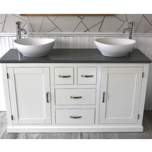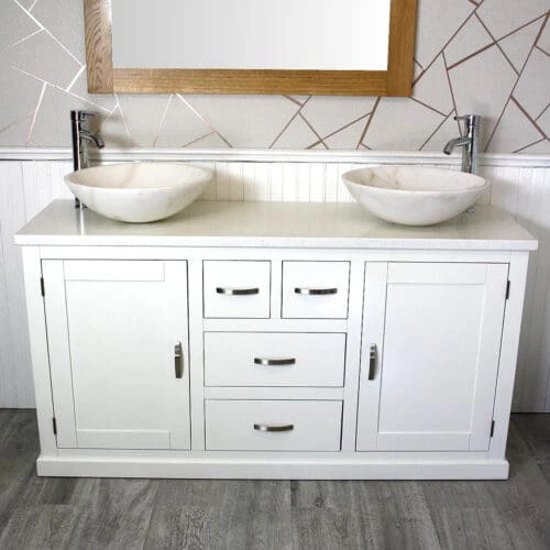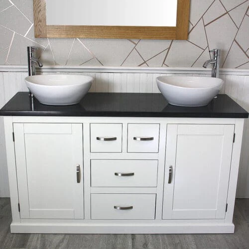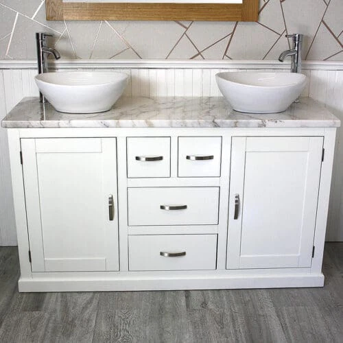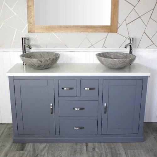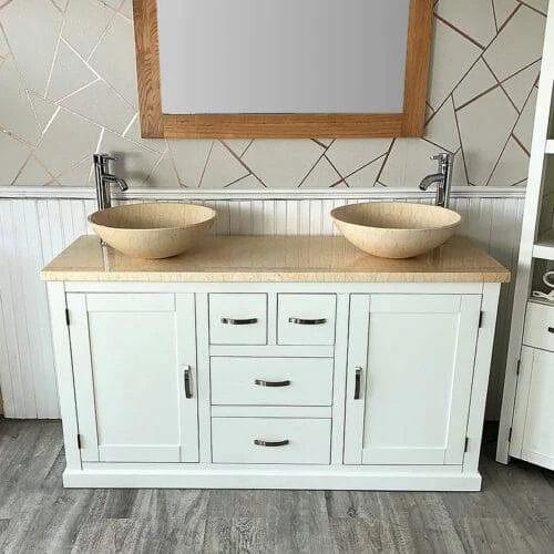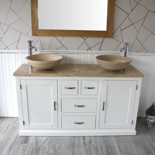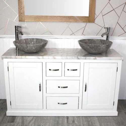 Painted stone topped range of vanities, available with a choice of white or cream marble, black, white or grey quartz and travertine tops, with stunning matching stone bowl or a choice of ceramic bowl.