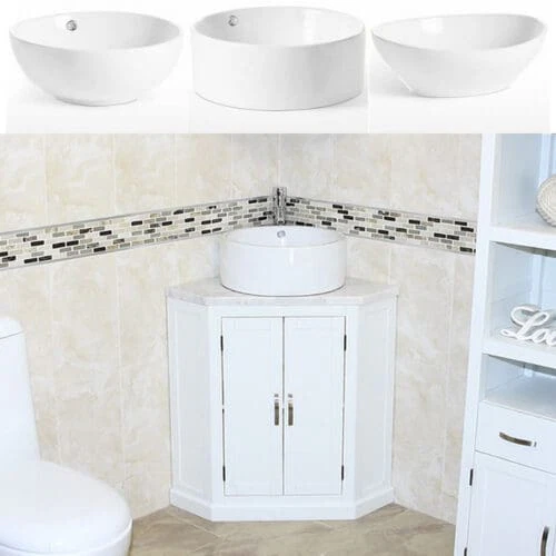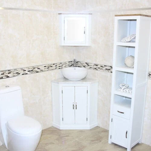 Off White Painted White Marble Top Corner Vanity Ceramic Basin Unit 501BPWMCBC