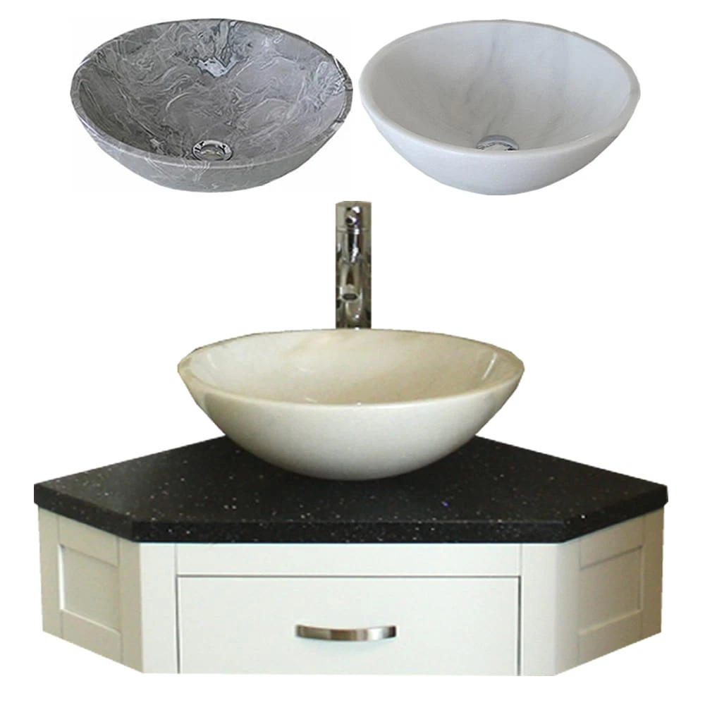 Black Quartz Top White Painted Corner Vanity Stone Basin Unit 501PWBQSBC