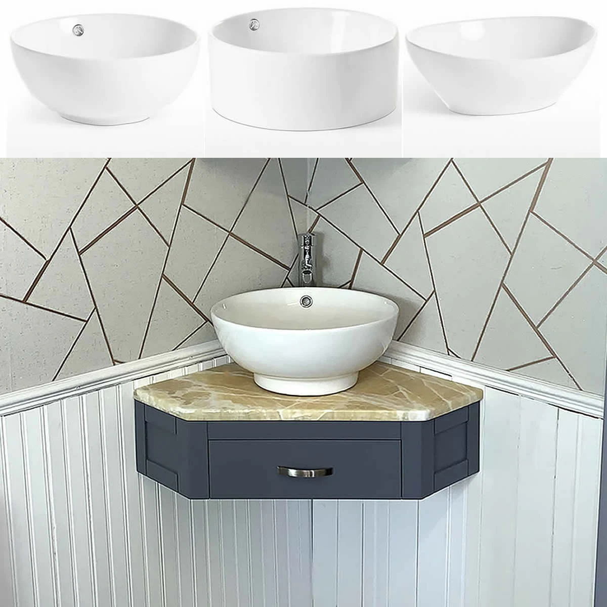 Choose From a Selection of Stylish White Ceramic Bathroom Wash Basins of Different Sizes & Shapes to Complete your Perfect Single Basin Vanity Unit Package.