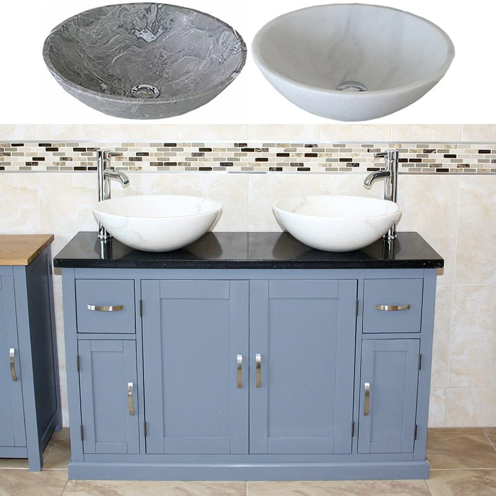 - Two beautiful heavy marble bowls of choice, see the dimensions of each basin below: