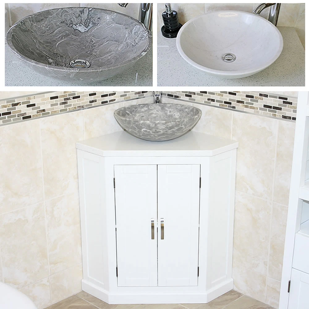 - A stunning pre drilled sparkling white quartz top.