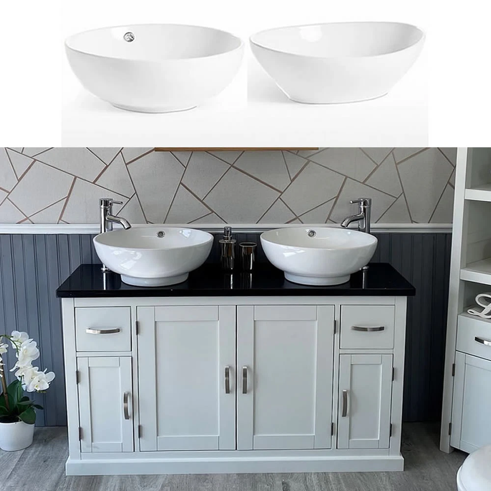 - Two ceramic bowls of choice, see the dimensions of each basin below: