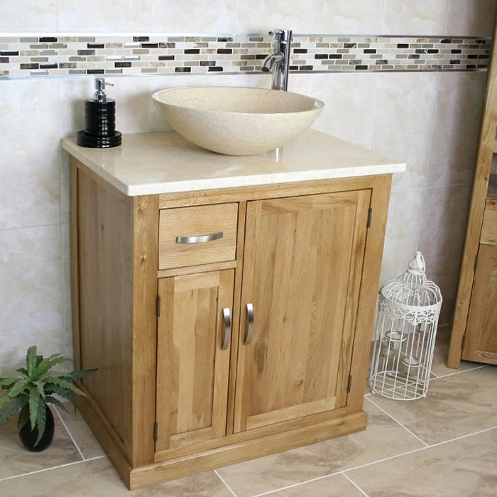 Stunning Single Vanity Unit with Cream Marble Top & Cream Marble Basin