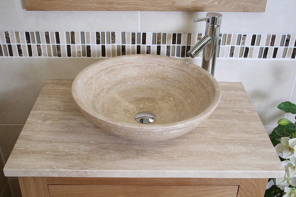 - A stunning pre drilled travertine top.