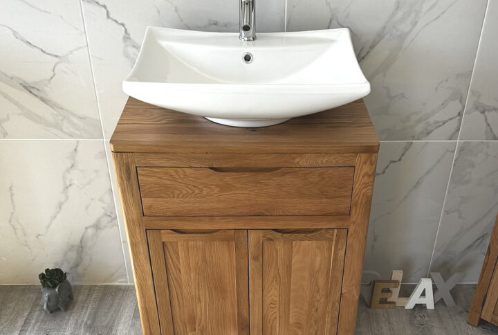 This stunning bathroom vanity unit and ceramic inset basin come with a great looking, chromed pop up plug and optional chromed mixer tap.