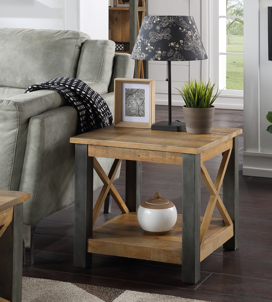 Introducing the Urban Elegance Reclaimed Lamp Table: rustic charm meets modern style.
