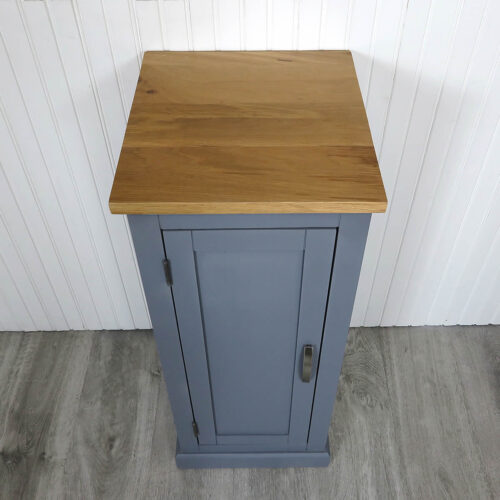 Slimline Bathroom Cabinet Vanity Unit | Grey Painted Furniture | Solid Oak Top 308G