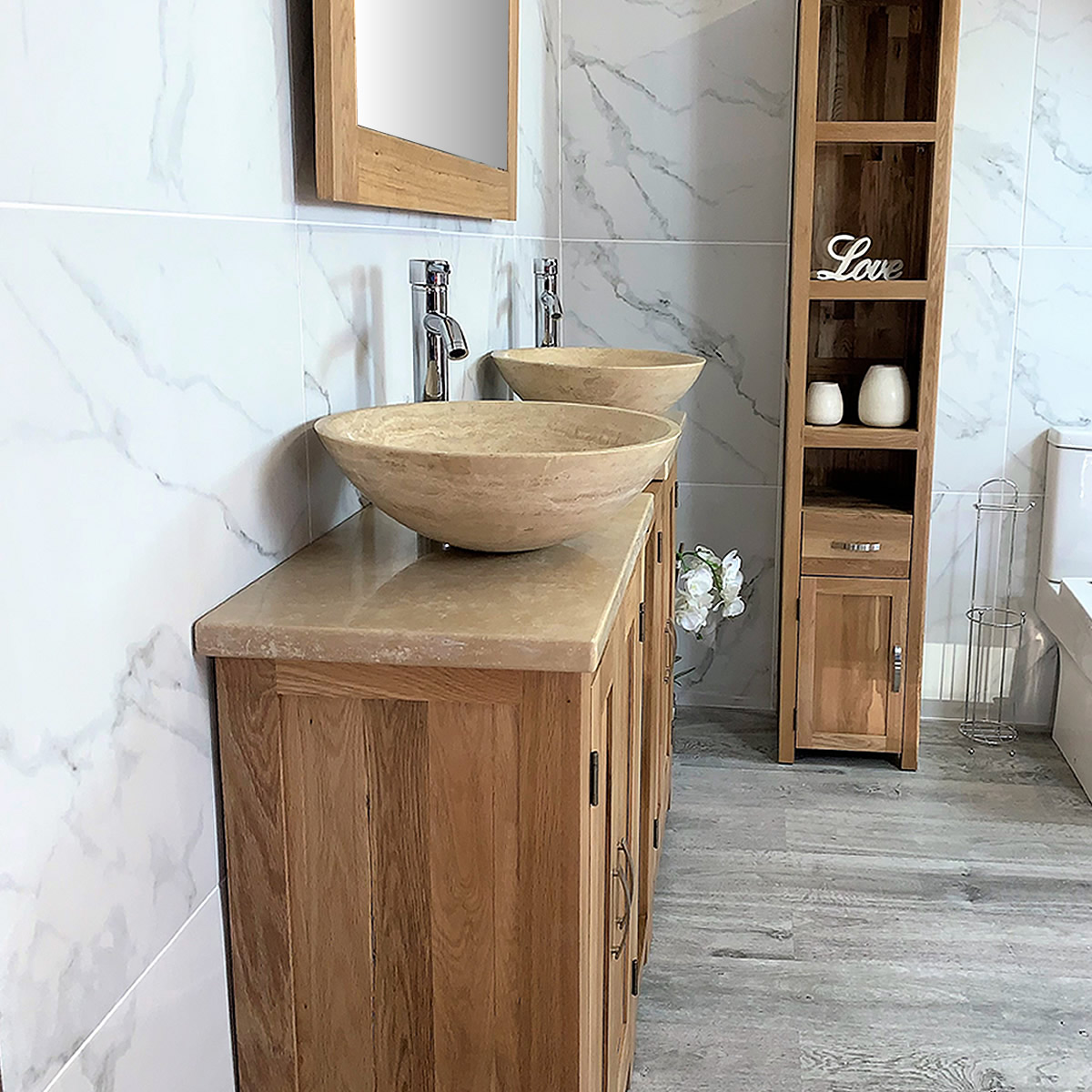 This stunning travertine top and basin come with a great looking, chromed pop up plug and optional chromed mixer tap.