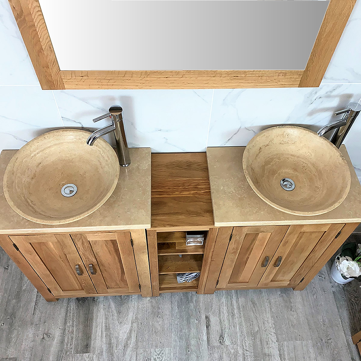 - Two round curved travertine bowls, see the dimensions of basin below: