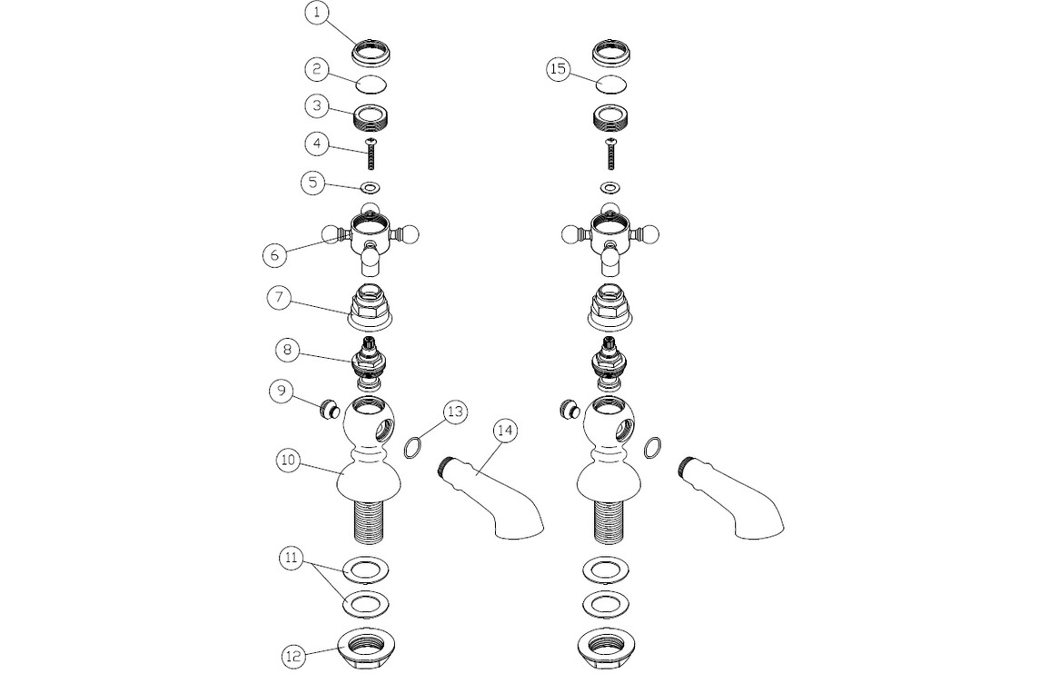Low Pressure Deck Mounted Brushed Brass Basin Taps