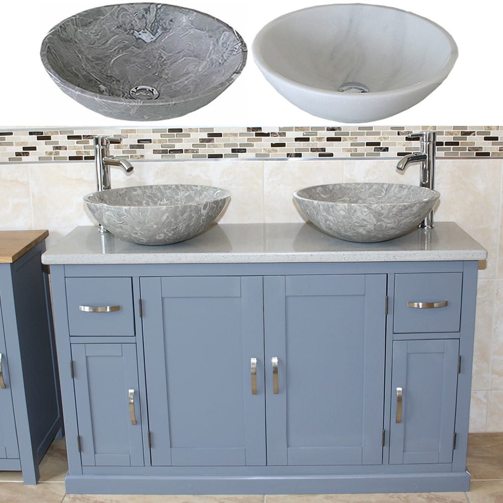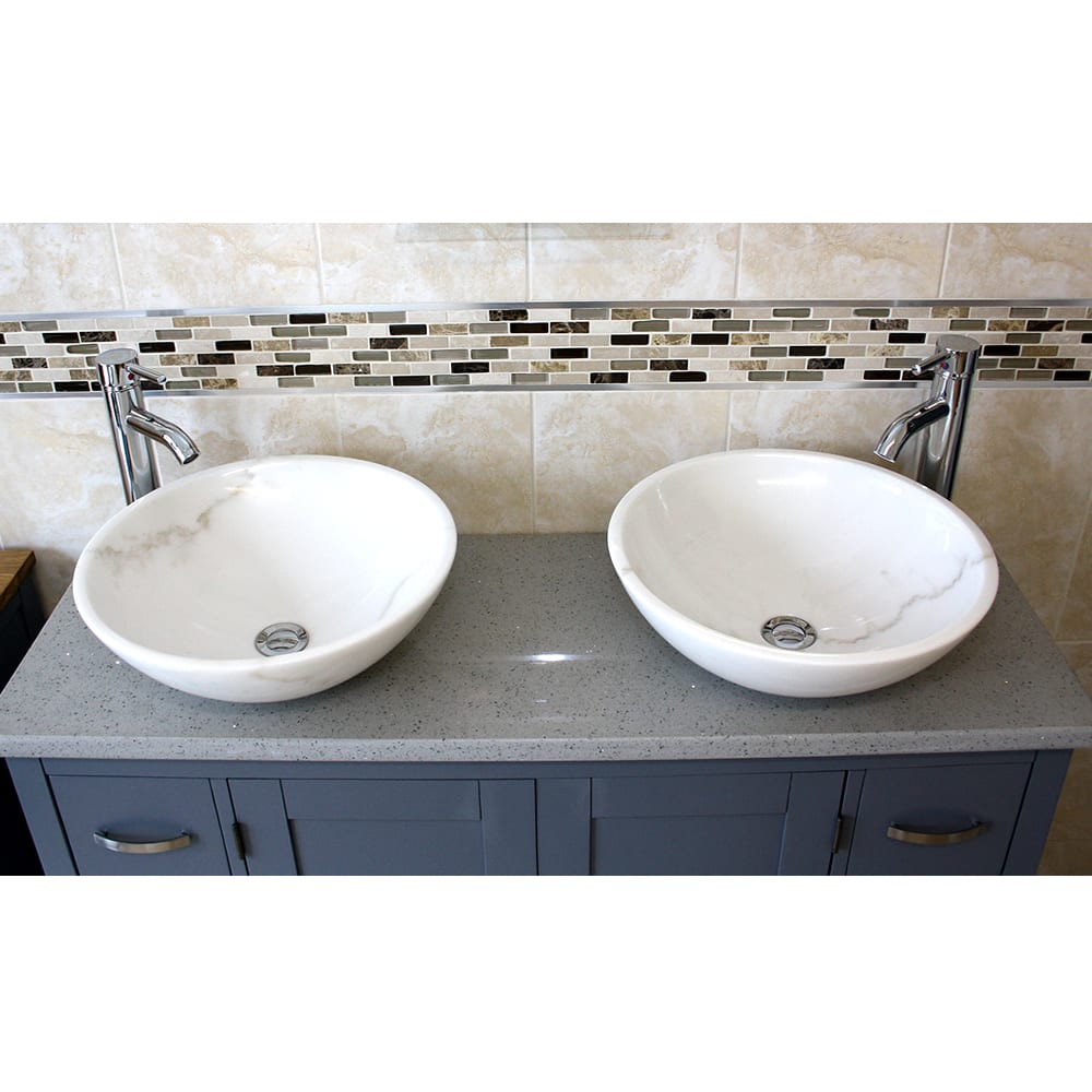 - Two beautiful heavy marble bowls of choice, see the dimensions of each basin below: