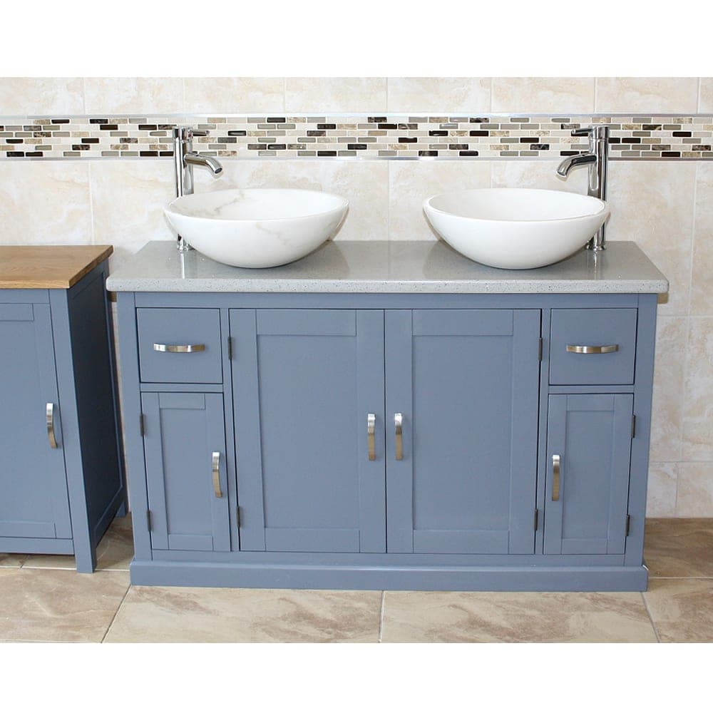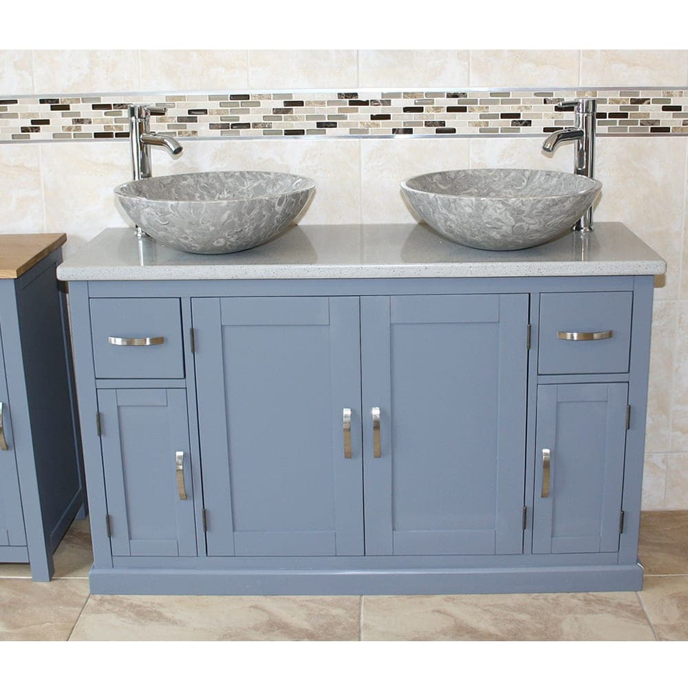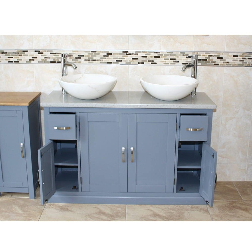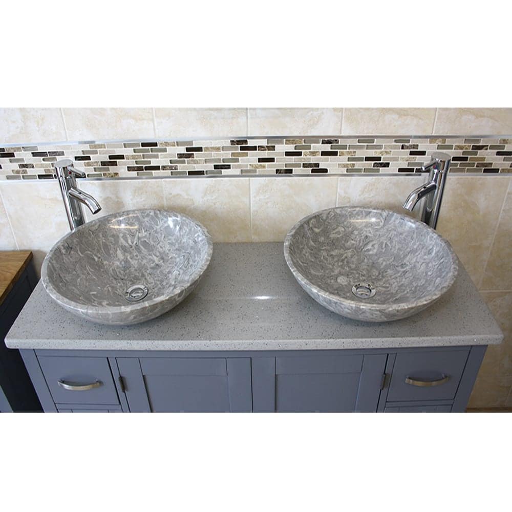 - One stunning double pre-drilled sparkling grey quartz work top.