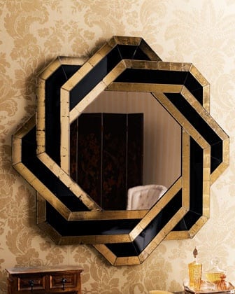 Choosing a statement mirror for your bathroom is a brilliant way to add your own style & personality to your bathroom. Whether you are a lover of traditional or contemporary interior design, your mirror can be a great way to express your style through one strong piece. This black and gold art deco inspired statement mirror below with a worn effect is a real head turner and you will surely get lost in your reflection staring at this unique piece!
