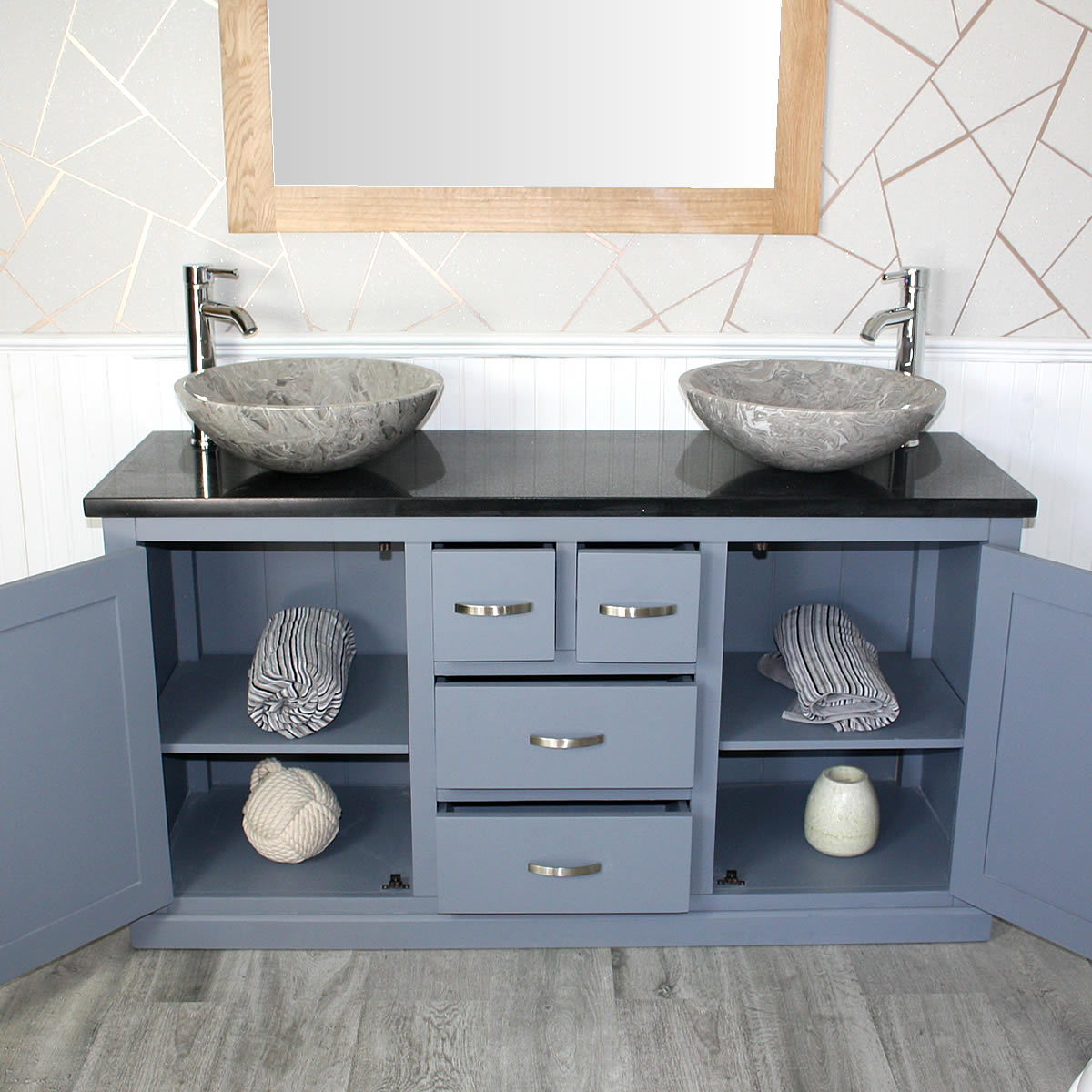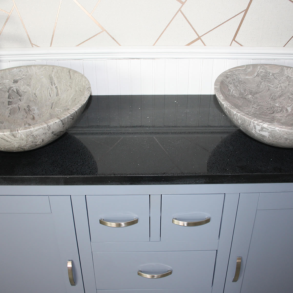 - Two beautiful heavy marble bowls of choice, see the dimensions of each basin below: