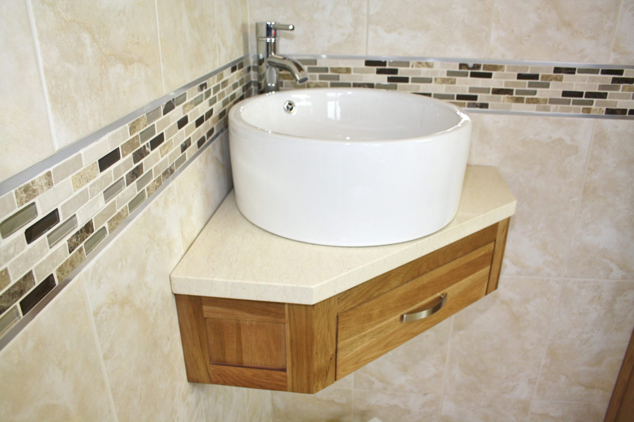 Mirrored corner cabinet and tall storage unit in image are not included but are optional extras, please see below.