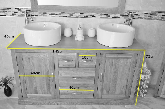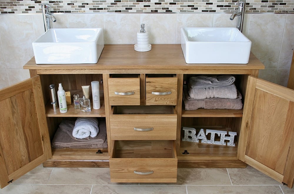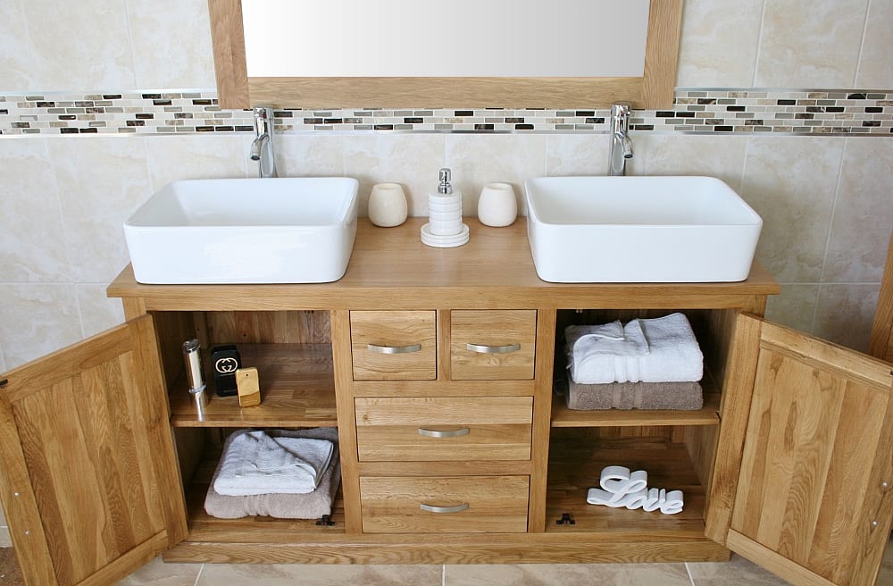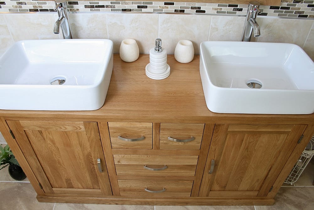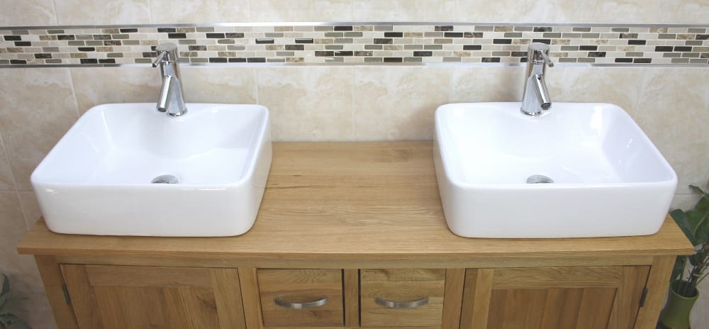 Double Basin Vanity Unit with Oak Top & Two White Ceramic Basins of your Choice