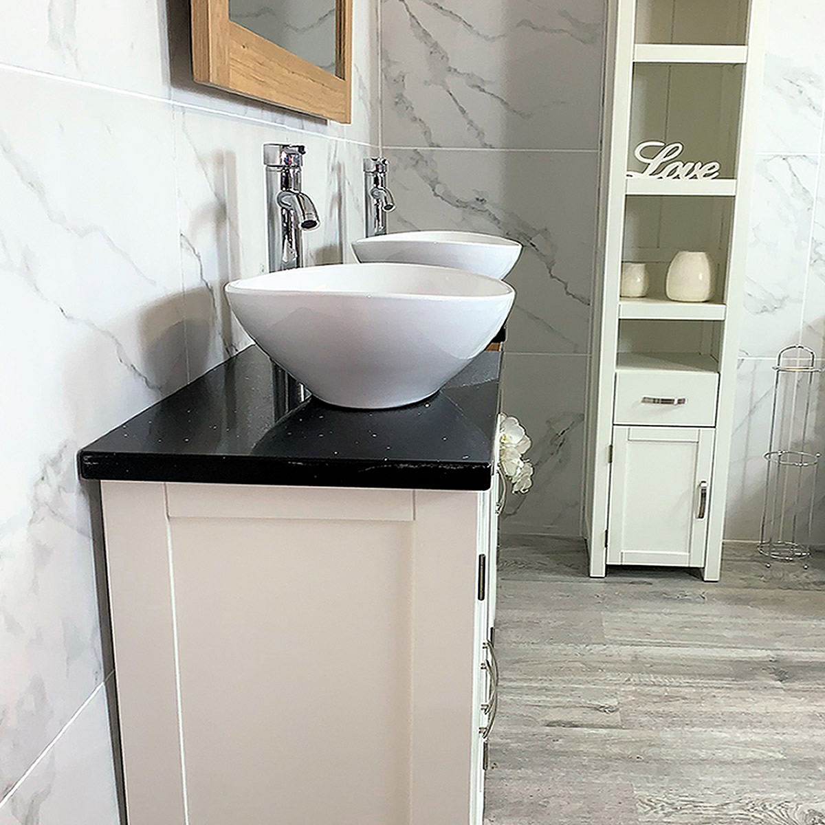 - Two ceramic bowls of choice, see the dimensions of each basin below: