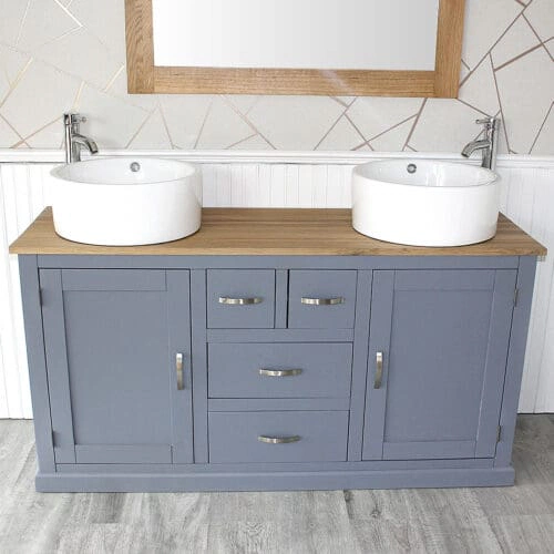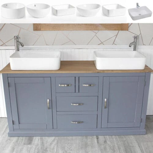Bathroom Vanity Unit Sink Washstand Grey Painted Sit On Ceramic Basin Tap 311GCBC