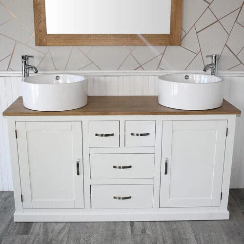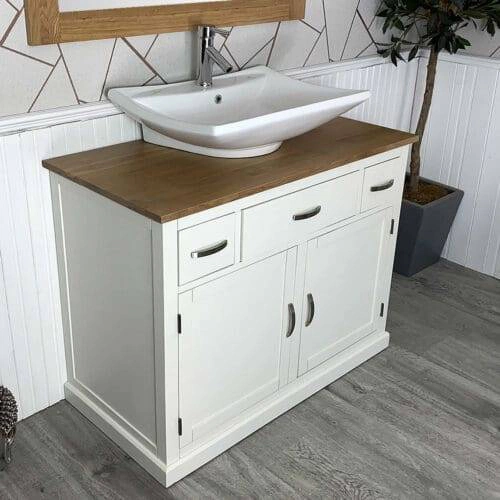 White Painted Wooden Vanity Oak Top Ceramic Basin Unit 402PCBC2