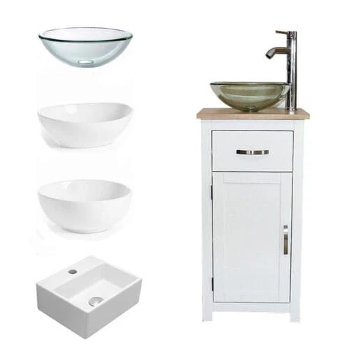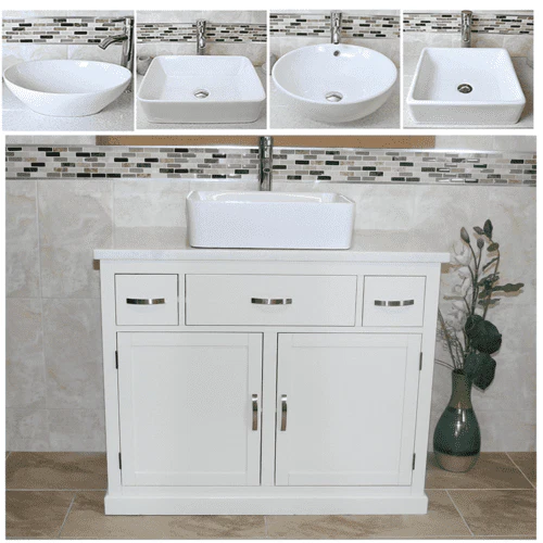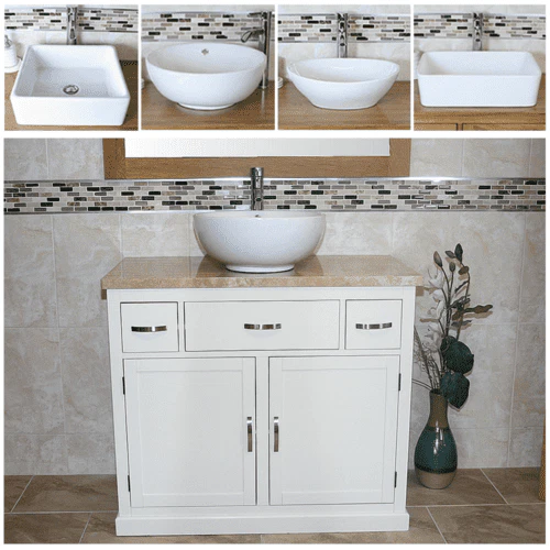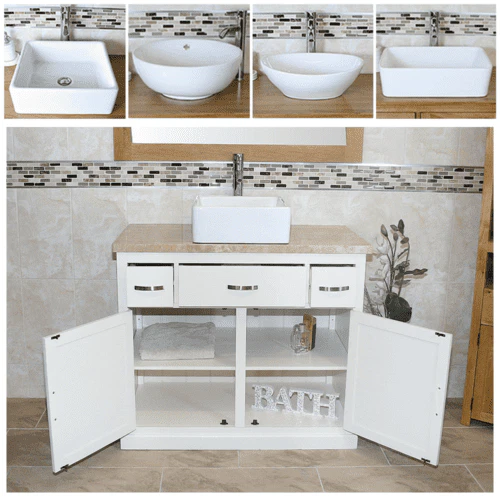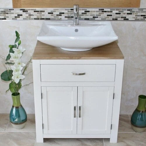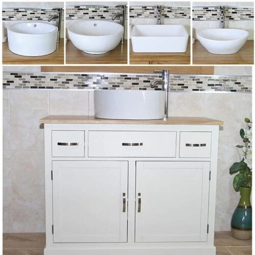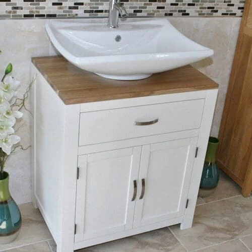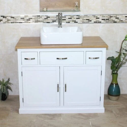 Painted White Wooden | Oak Top Painted Vanity Ceramic Basin Unit 1161PCBC