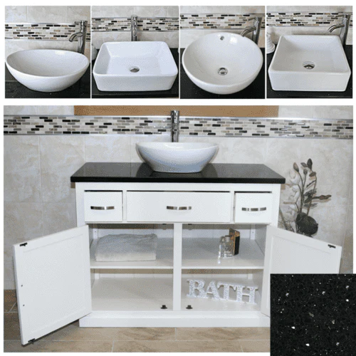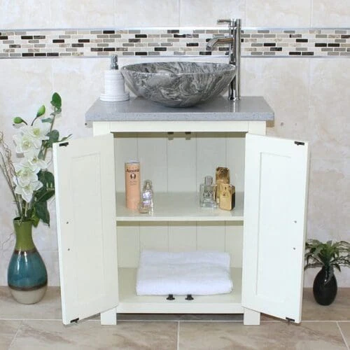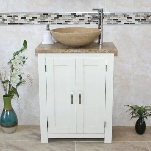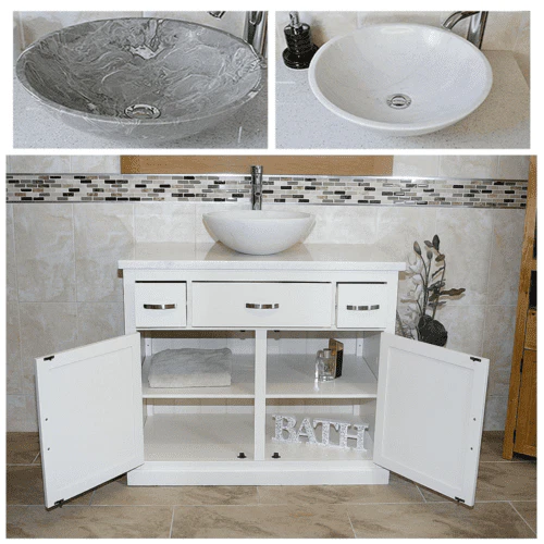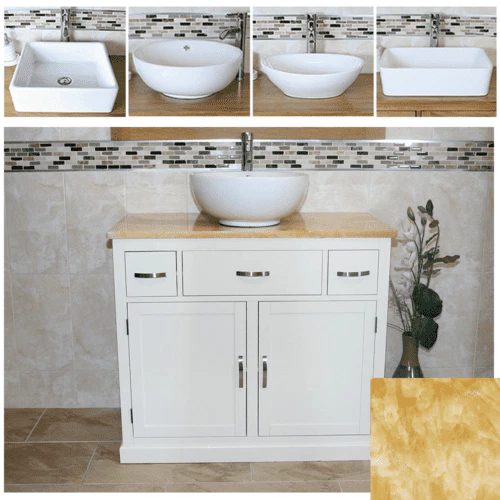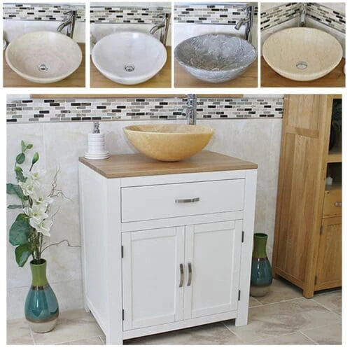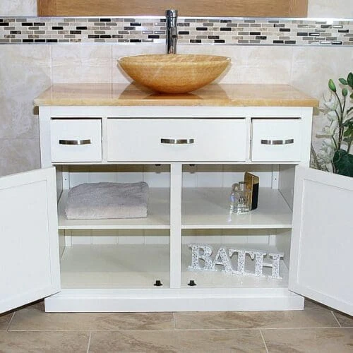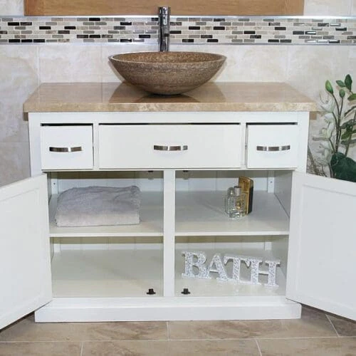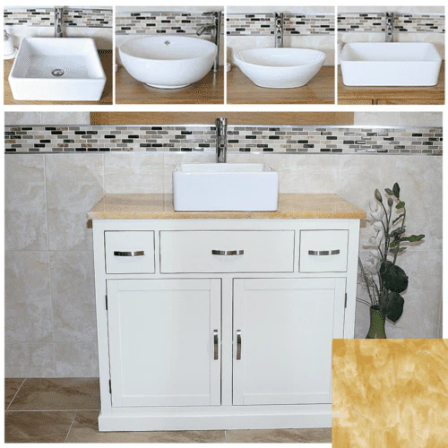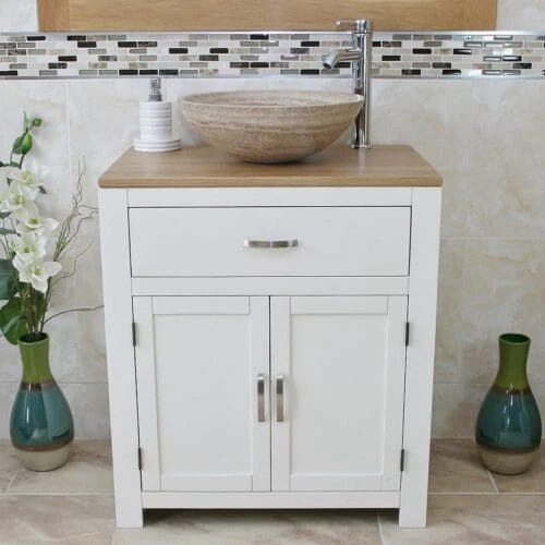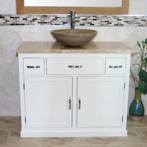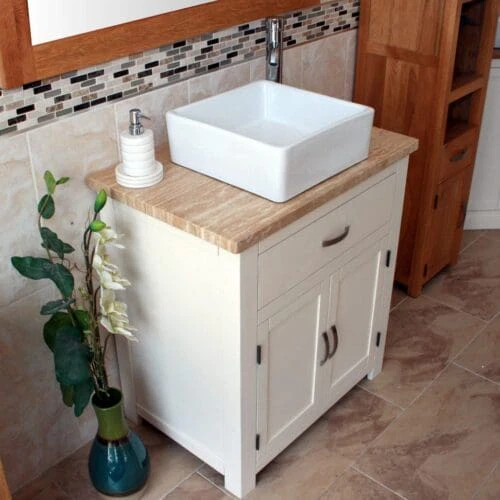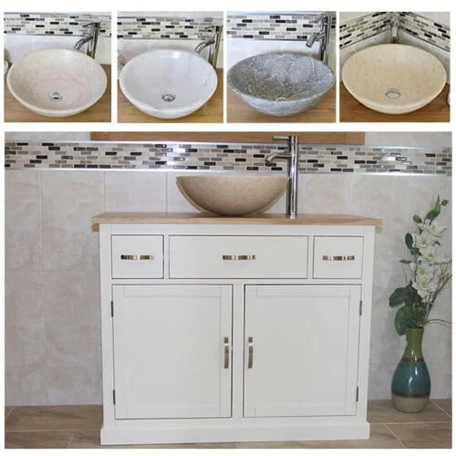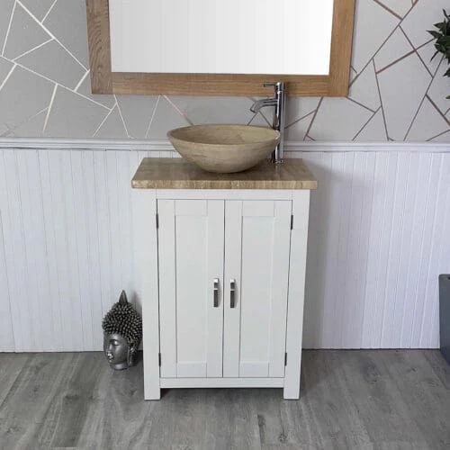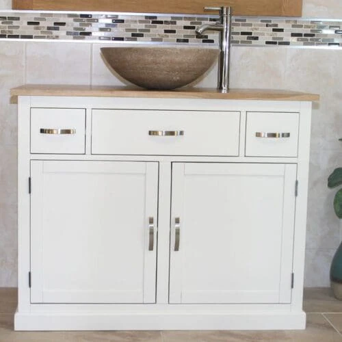 Painted White Wooden | Oak Top Painted Wood Unit Stone Basin Unit 1161PSBC