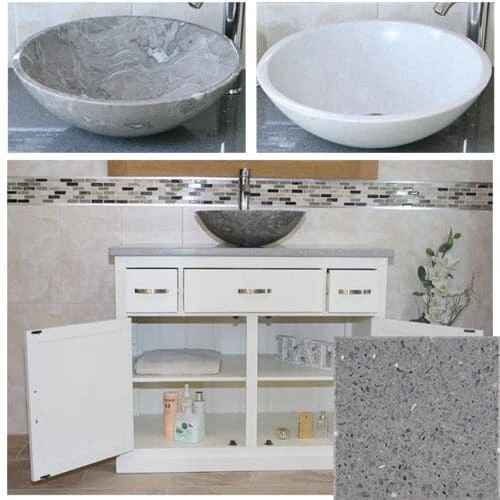 Discover the perfect cloakroom or corner vanity units from sleek single vanity units to luxurious double vanity units at Bathrooms & More Store. Choose from premium solid oak, elegant marble, and chic stone finishes, each crafted for enduring style, practicality, and effortless maintenance.