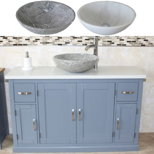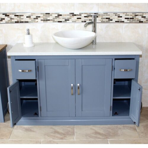 Grey Painted Vanity White Quartz Top Stone Basin Unit 402GWQSBCX1