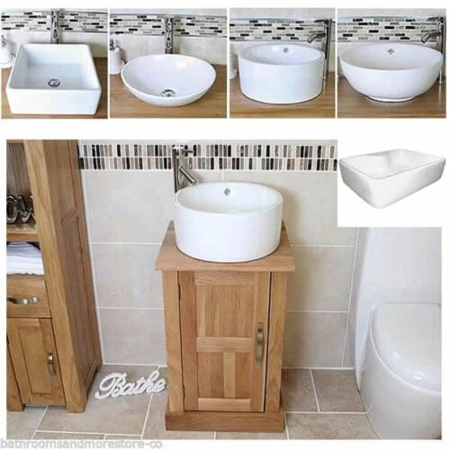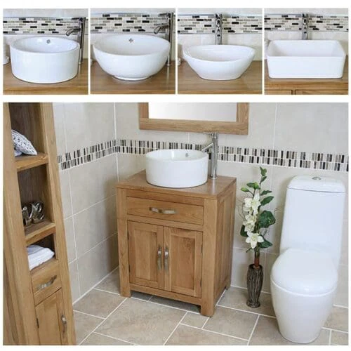 Explore our selection of Oak Top Wooden Vanity Units & Basin with round straight sided ceramic Basin for all Bathroom types, at Bathrooms and More store your one stop shop for Bathroom Furniture in the UK.