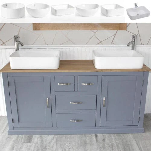 Painted Grey Wooden Vanity | Oak Top Painted Vanity Ceramic Basin Unit 1161GCBC