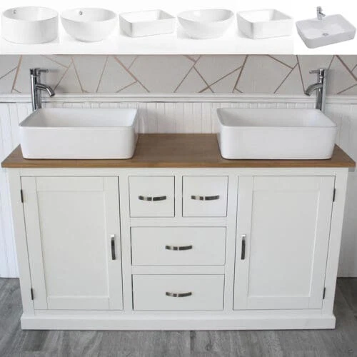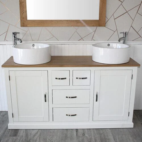 Painted White Wooden | Oak Top Painted Vanity Ceramic Basin Unit 1161PCBC