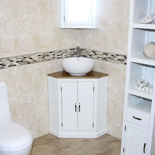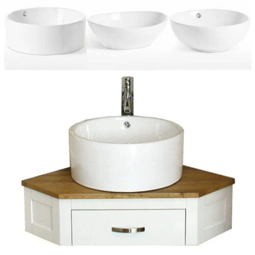 Off White Painted Oak Top Wooden Corner Vanity Basin Unit 501BPCBC