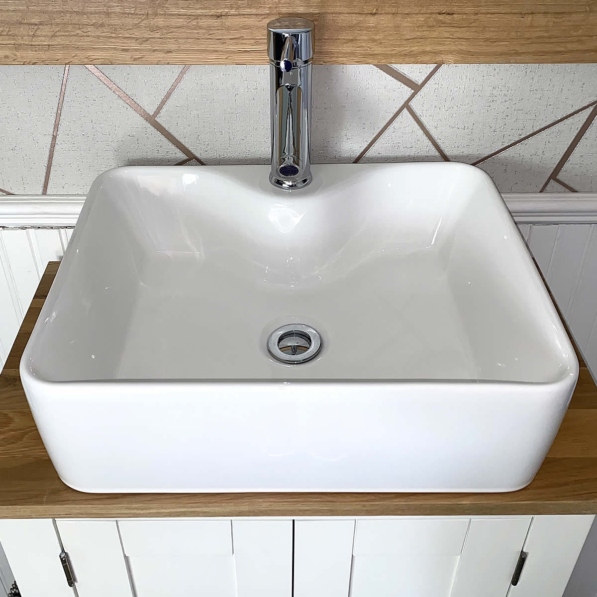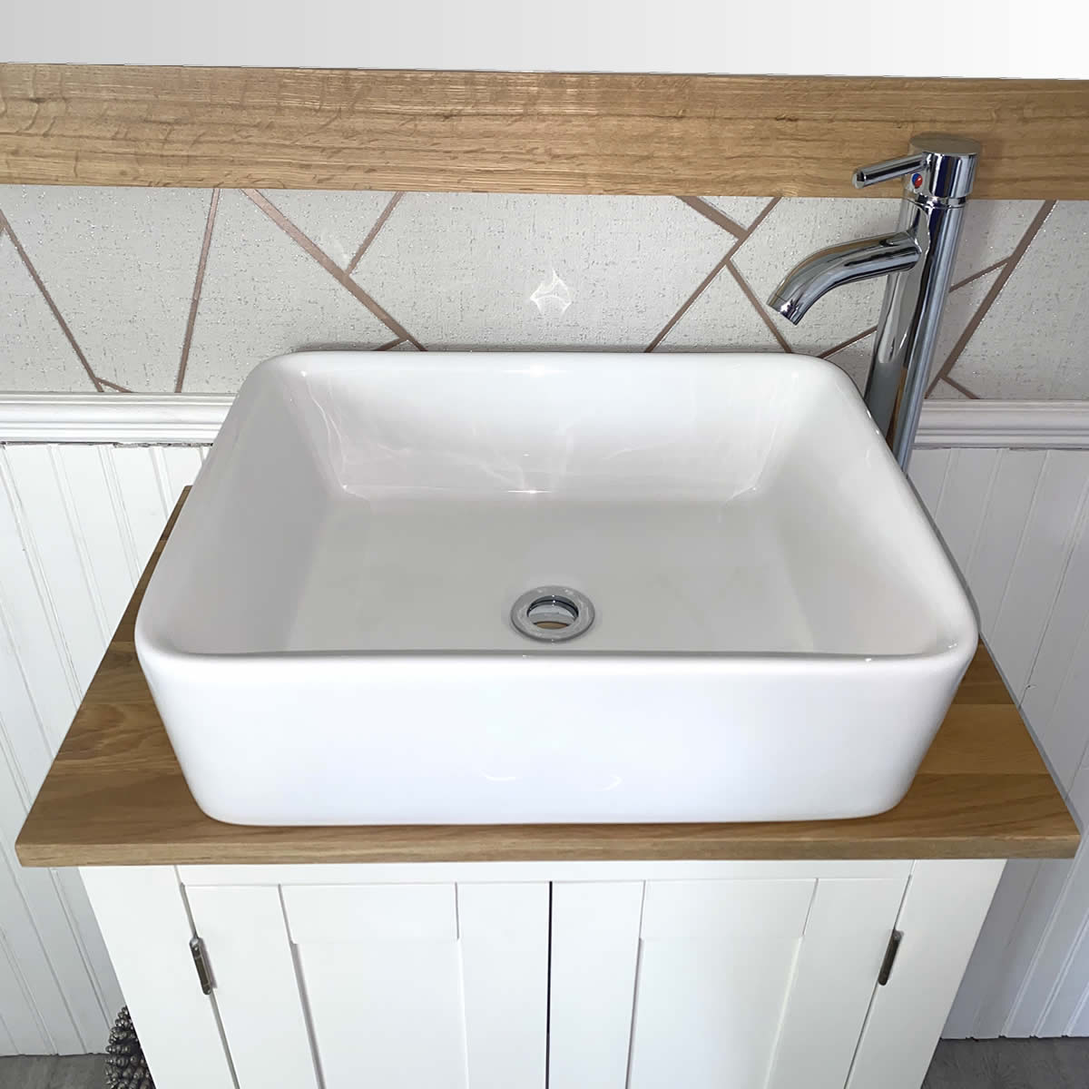 - Rectangle Tap Mounted Ceramic Bowl Dimensions : H13.5cm X W48.5cm X D37.5cm.