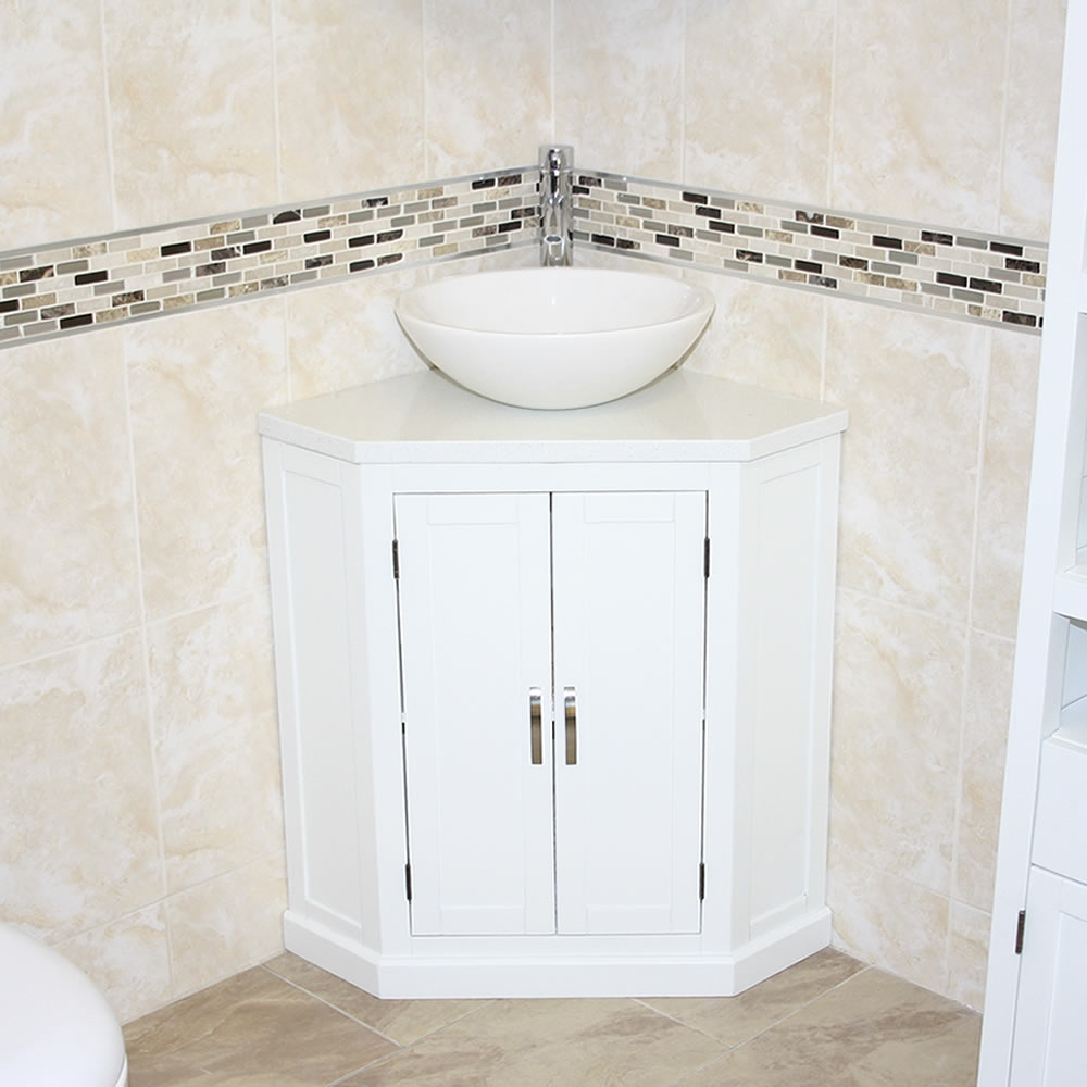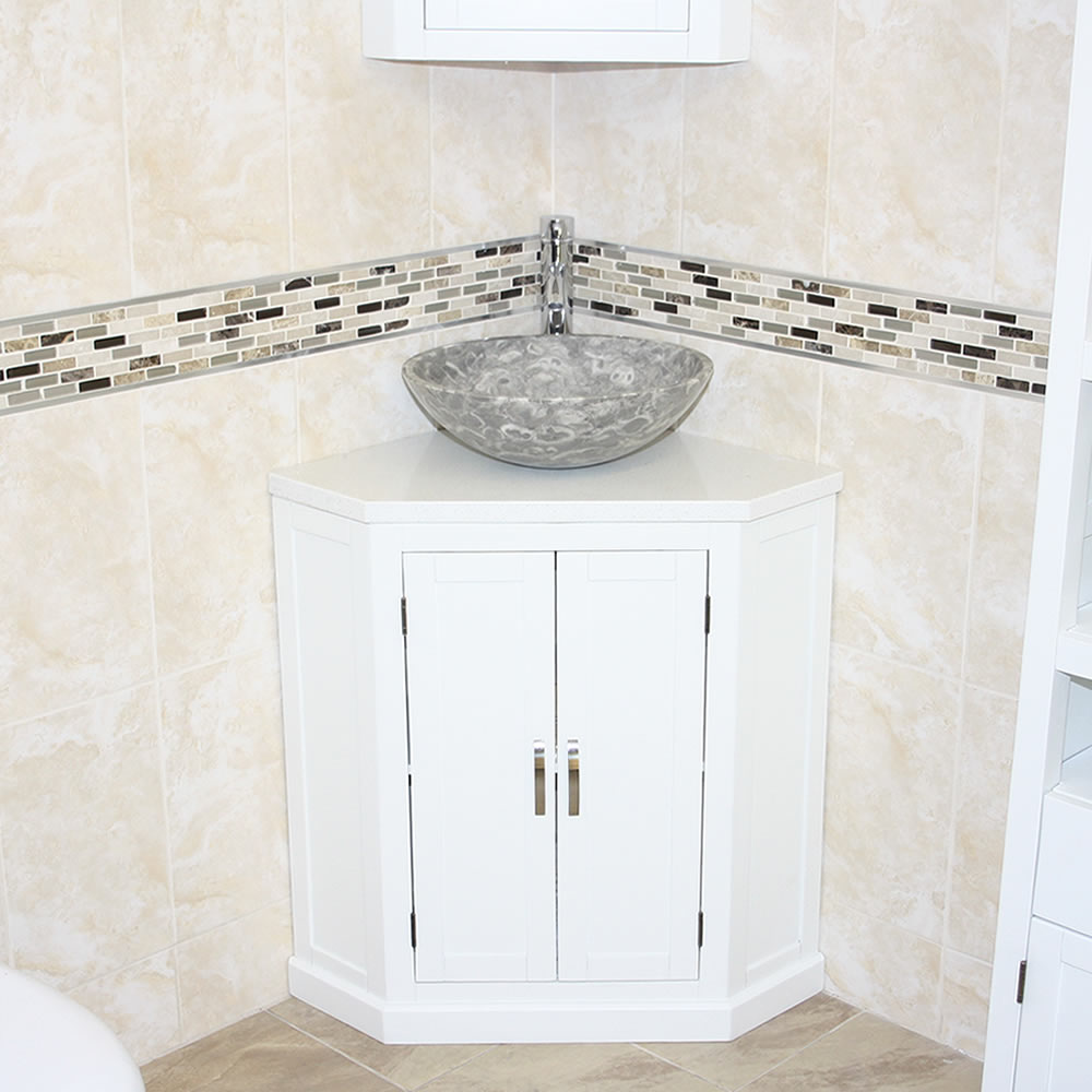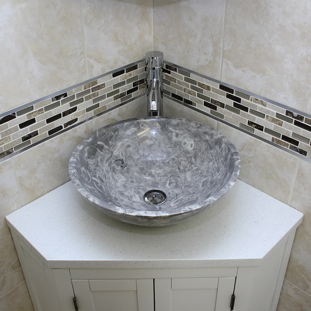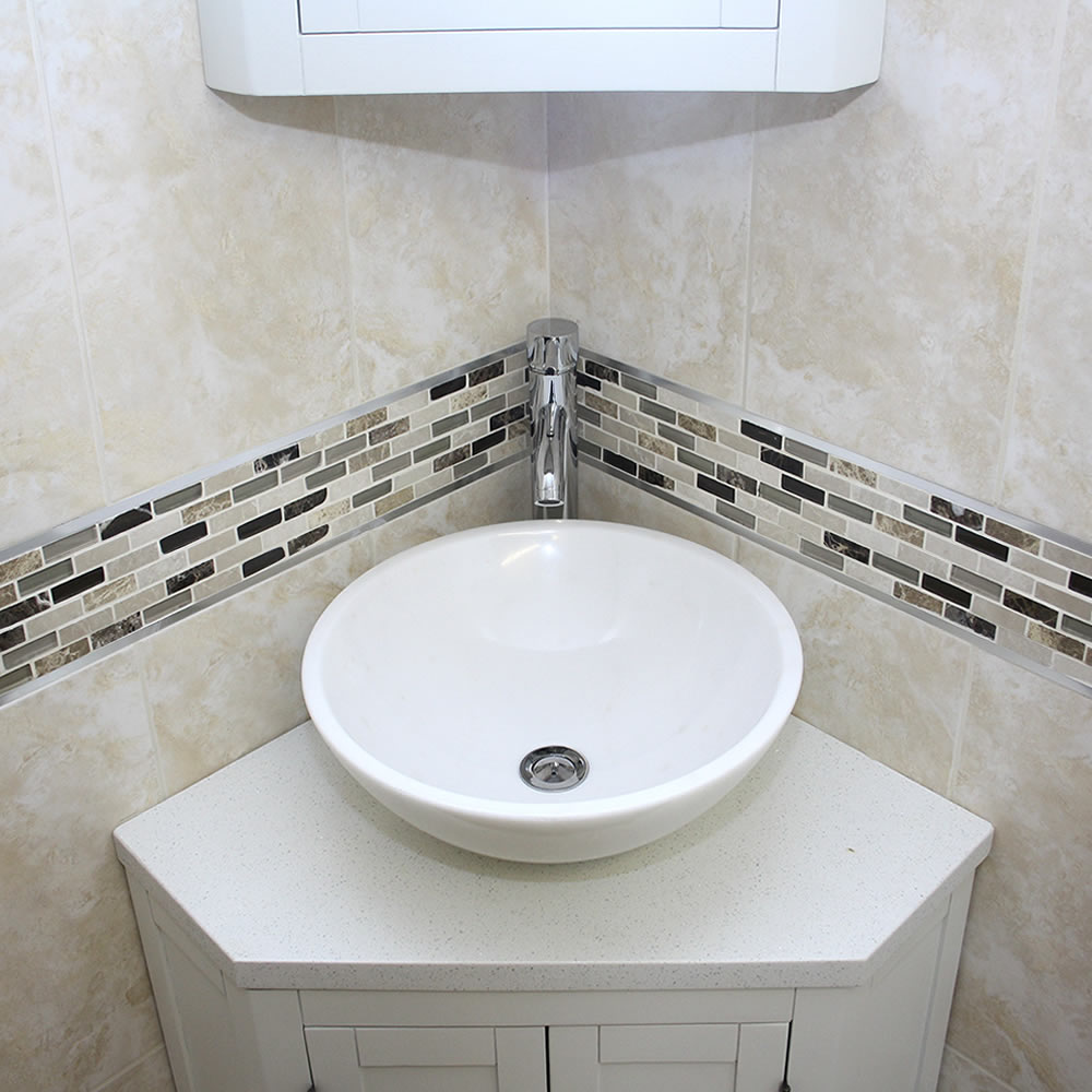 - A stunning pre drilled sparkling white quartz top.