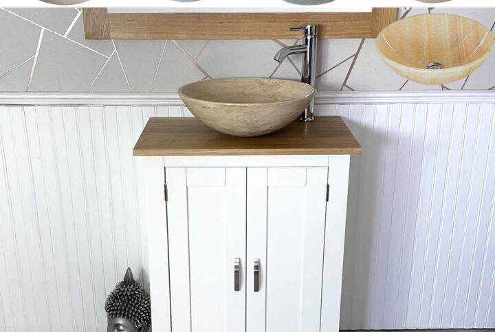 • Stunning heavy travertine bowl set, see the dimensions of basins below: