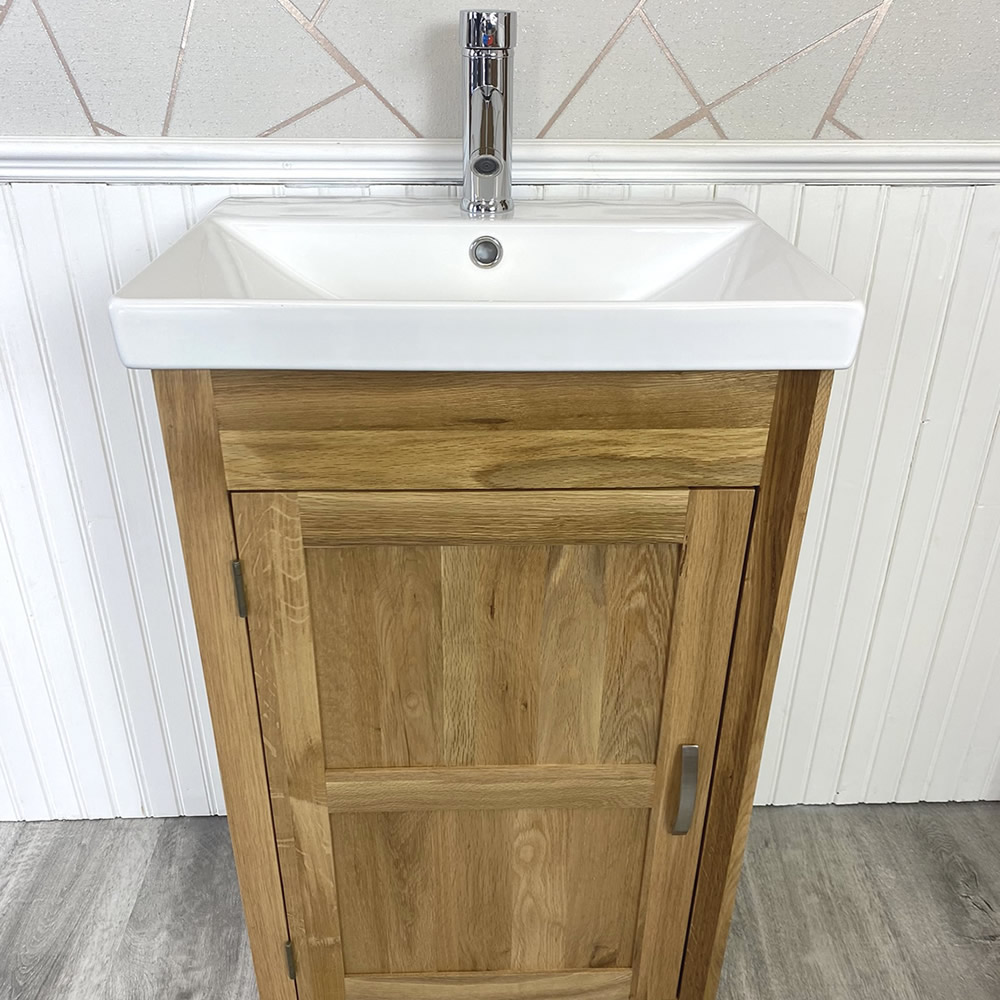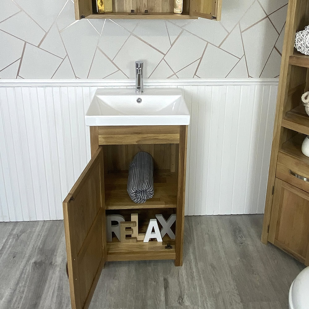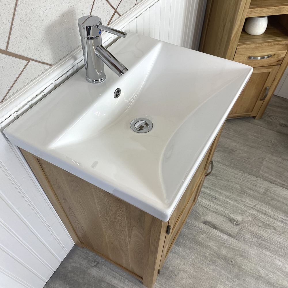 This stunning bathroom vanity unit and ceramic inset basin come with a great looking, chromed pop up plug and optional chromed mixer tap.